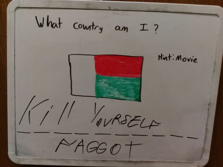 原本在小白板上,他會畫一面國旗,問問宿舍的同學這是哪一個國家,但近日卻接連出現恐同的辱罵字眼,甚至還被劃上納粹符號等等,該學生把照片PO上臉書,並報告校方,校方卻是以「怕會毀壞校譽與減少捐款收入」希望能夠息事寧人。