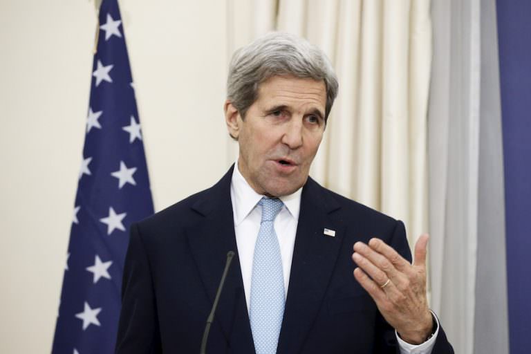 U.S. Secretary of State Kerry addresses journalists during a joint news conference with Greek Foreign Minister Kotzias at the ministry in Athens By 消化餅 10 1 月, 2017