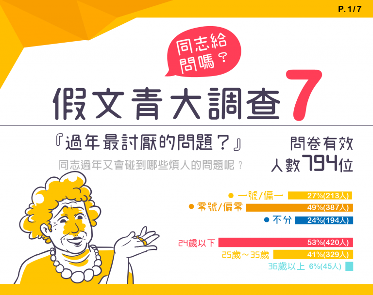 這回「假文青調查室」來到了許多同志朋友都感同身受的問題,就是過年大家最痛苦的時刻,這問卷想告訴同志朋友們,你不孤單!其實大家都跟你一樣痛苦呀~一起來看看最讓同志痛苦的問題是什麼吧!