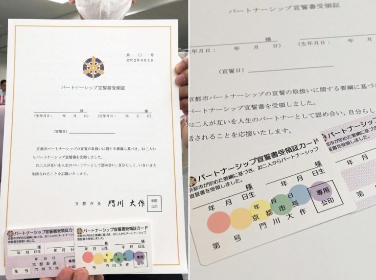 日本古城京都市的同性伴侶關係證明制度,於9月1日正式生效,官方為了歡慶此政策,位於下京區域的知名地標「京都塔」點亮六種顏色的彩虹燈光來表達對同志族群的支持。